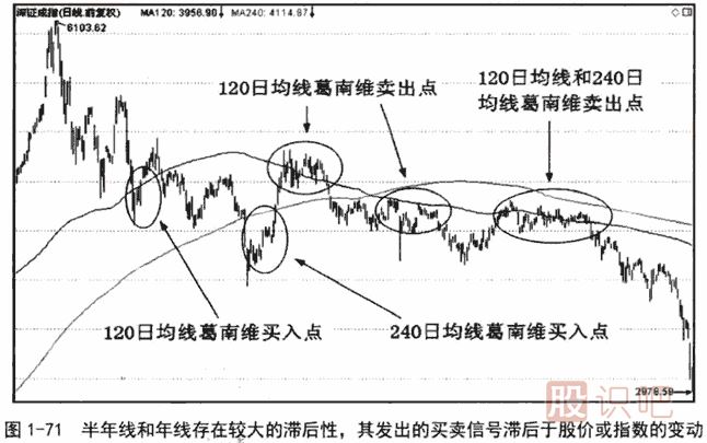 年線和半年線通常用于判斷趨勢強(qiáng)弱和選股,用于確定進(jìn)出場標(biāo)準(zhǔn)時,由于存在著嚴(yán)重的滯后性,作用價值不大。