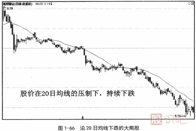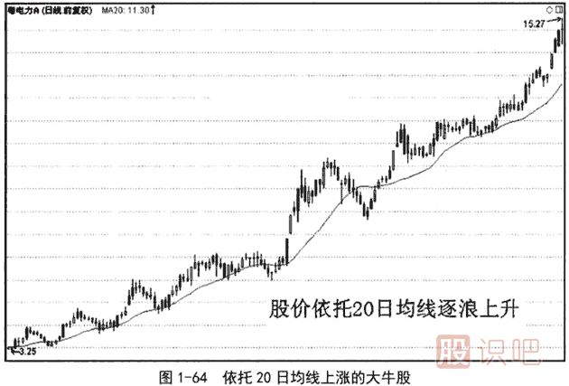 大牛市的大部分時間,或者大部分牛股,都是依托20日均線或30日均線上升的。同樣,大熊市的大部分時間,或者大部分大熊股,都是依托20日均線或30日均線下跌的。