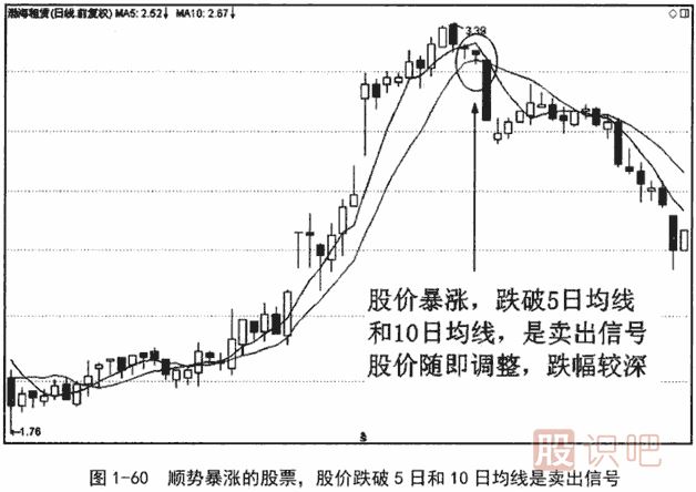 對于沿著5日或10日均線陡峭上漲的股票,離場標(biāo)準(zhǔn)一般有以下三種:①放量滯漲;②收出見頂?shù)腒線形態(tài);③股價跌破5日或10日均線。