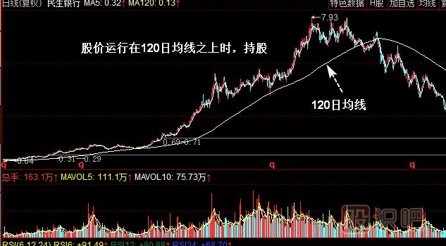 (4)股指或股價(jià)運(yùn)行在120日均線上方時(shí)持股待漲。