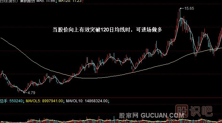 (3)股指或股價(jià)向上有效突破120日均線時(shí)可做多。
