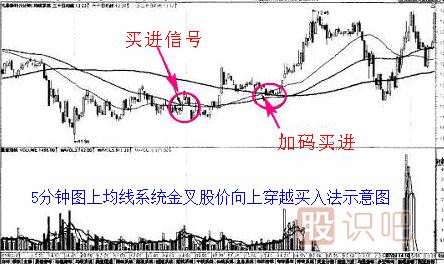 第一種 均線系統(tǒng)金叉股價(jià)向上穿越買(mǎi)入法