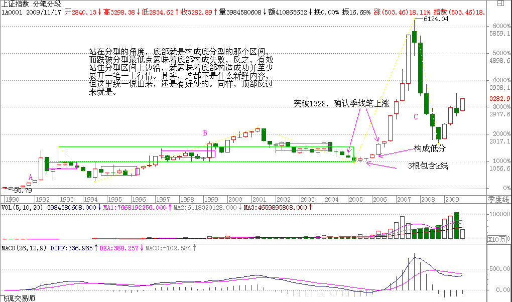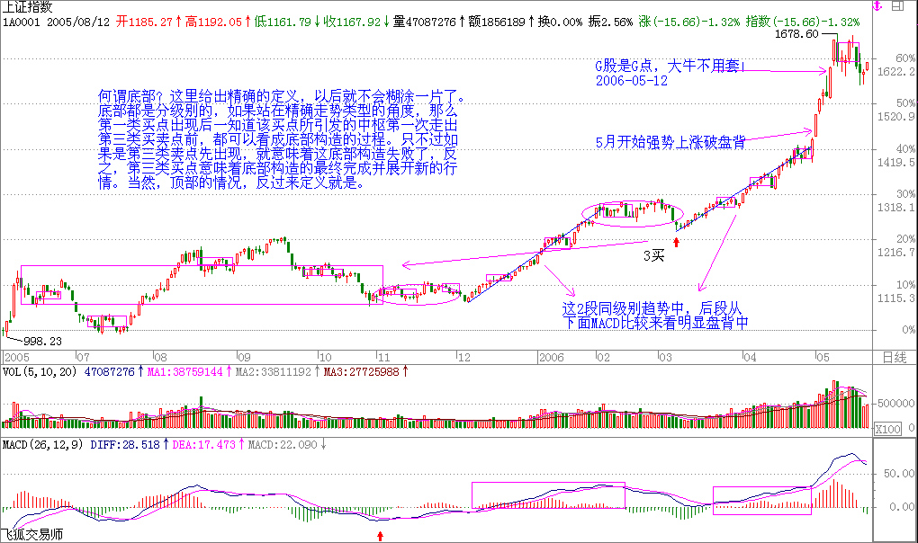 即2006年5月12日《G股是G點(diǎn),大牛不用套纏論中樞公式給您議G股是G點(diǎn)大牛不用套!》纏股市開(kāi)篇第一課之后,歷時(shí)半年纏于2006-06-07 18:08:15為什么開(kāi)始寫(xiě)教你炒股票1:《不會(huì)贏錢(qián)的經(jīng)濟(jì)人,只是廢人!》?請(qǐng)看纏的第十課后我的配圖就一切都明白了。整個(gè)108課,纏帶領(lǐng)著大家經(jīng)歷了一個(gè)完整的上漲啟動(dòng)和下跌的結(jié)束,她在08年8月教你炒股票108:何謂底部?從月線看中期走勢(shì)演化(2008-08-29 09:15:01)一文中明確教大家在此處的分型的判斷中如何確立底部分型到2008年10月底確立后。課文也隨著她的2008-10-10 09:24:36《無(wú)話可說(shuō)》結(jié)束了全部課程。